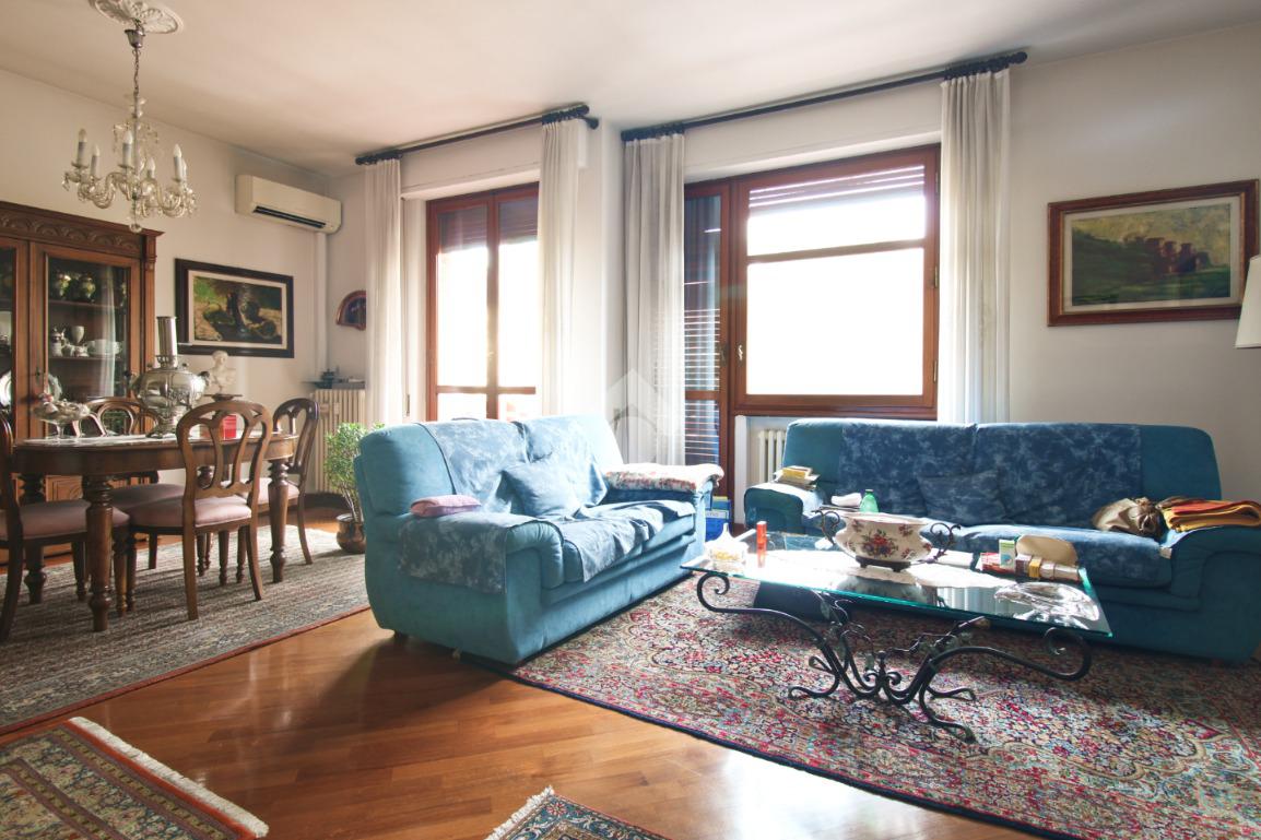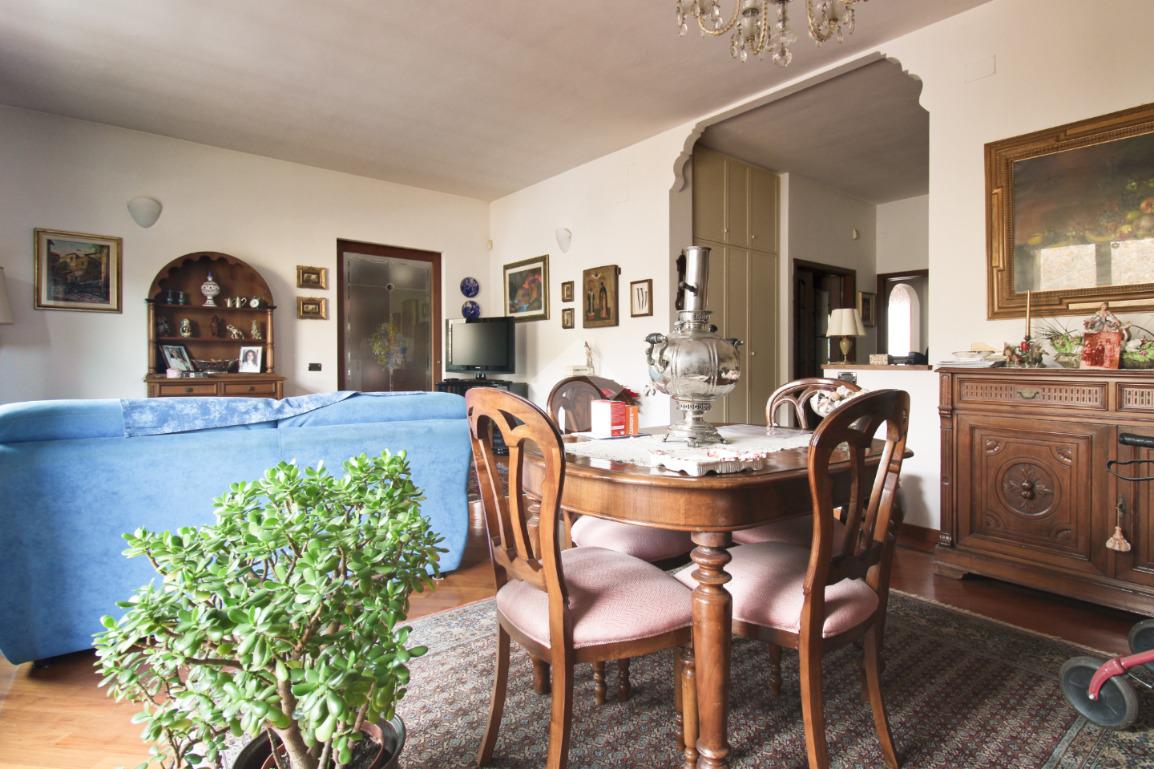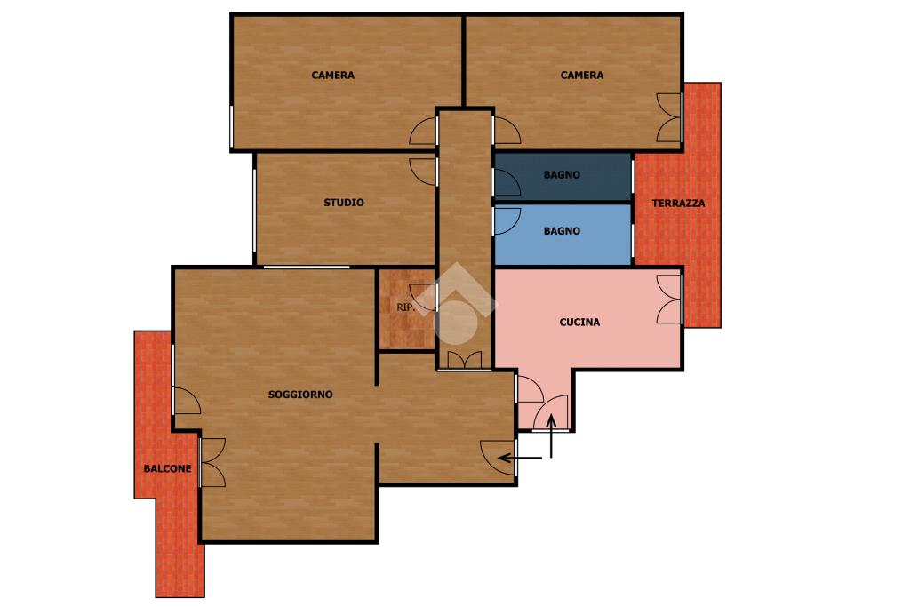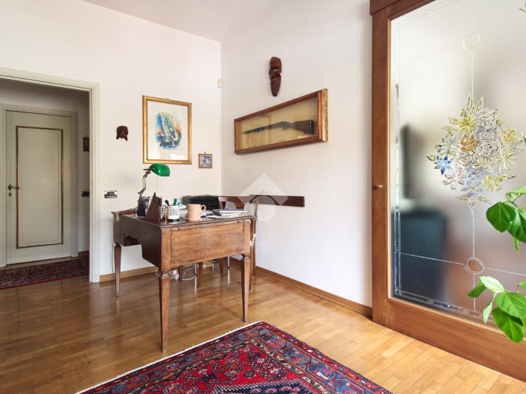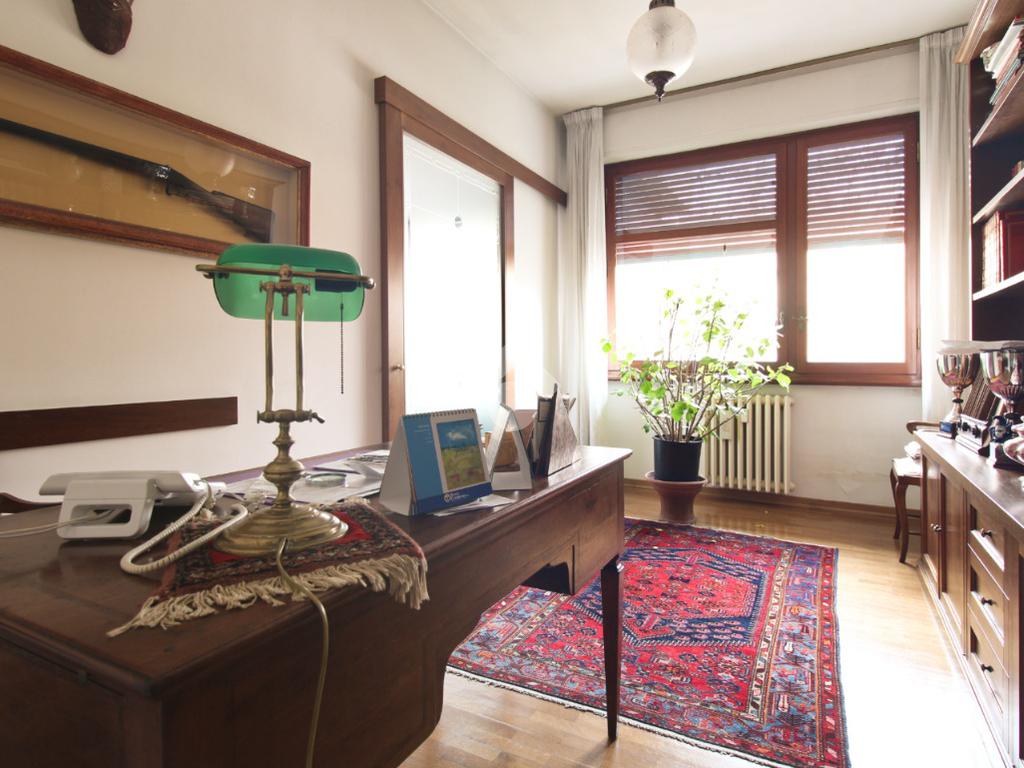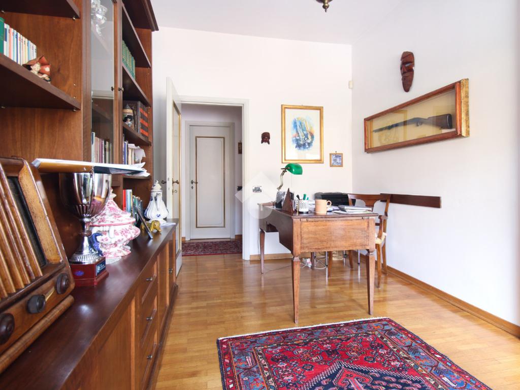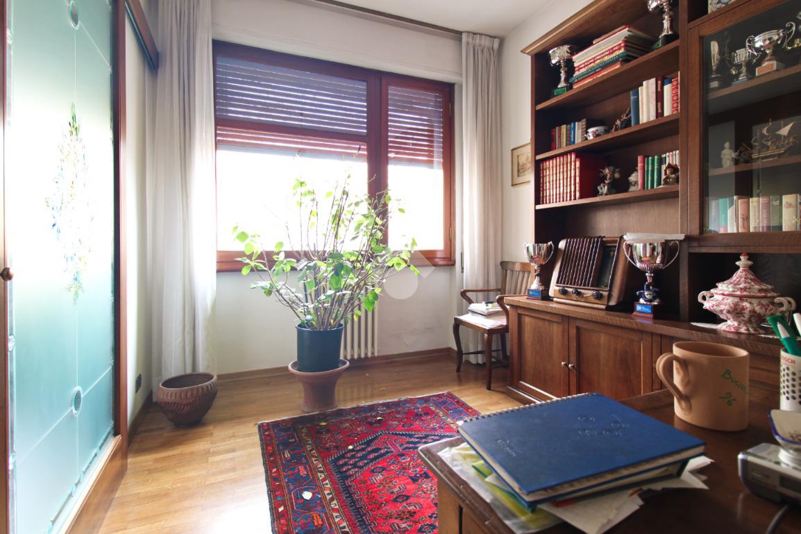 L'immobile misura circa 140 mq calpestabili e presenta un'ottima divisione degli ambienti. L'ampio ingresso conduce sulla sinistra al soggiorno doppio di quasi 35 mq, con accesso al balcone che affaccia sulla piazza, e sulla destra alla cucina abitabile dotata di terrazza tergale. Nella zona notte si trovano due camere da letto matrimoniali dotate di armadio a muro, un grande studio collegato al soggiorno tramite una porta a vetri scorrevole e utilizzabile come terza camera, due bagni entrambi finestrati e un comodo ripostiglio.