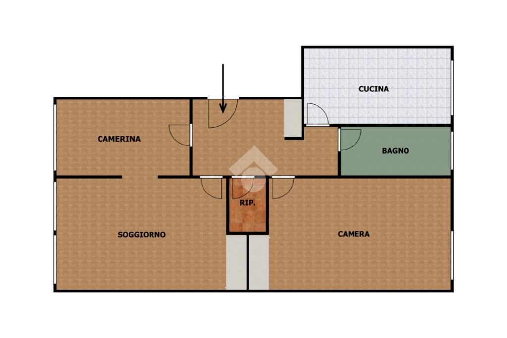 L'immobile è composto da ingresso/disimpegno, soggiorno collegato a una camera singola, camera matrimoniale, cucina abitabile e bagno finestrato.